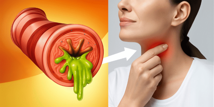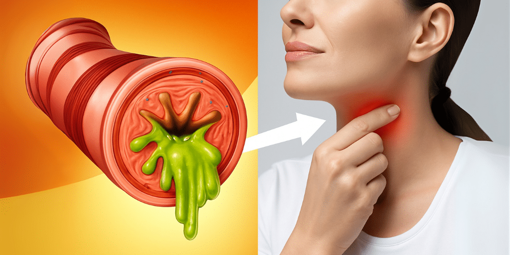 1. Laryngopharyngeal Reflux (LPR): Stomach acid comes up into the throat, causing irritation and excess mucus as a protective response, often without heartburn.